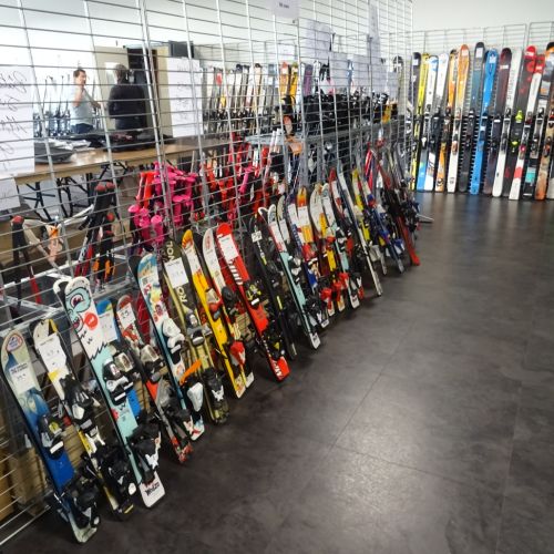 Nous proposons une large gamme de matériel neuf et occasion (skis, snowboards, bâtons, chaussures, casques, vêtements)