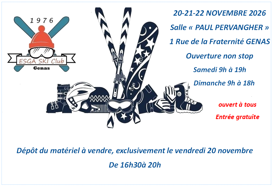 | 20 - 21- 22 Novembre | 2026 | Foire aux skis et vélos, | Salle Paul Pervangher |